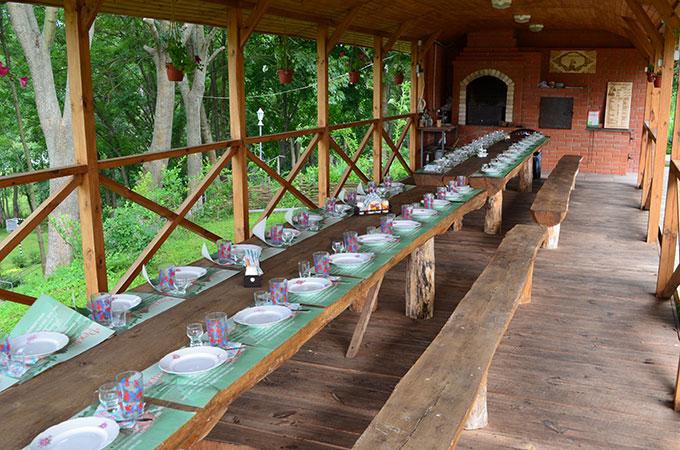 Price: No charge (arbors with bookin room, chess, checkers, darts, tennis, card game, swing, sandpit, football field , fishing in the Southern Bug river, forest, and so on).